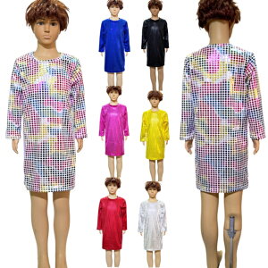 お子様に負担をかけず、舞台衣装、ダンス衣装として最適! スパンコール風 長袖ワンピース スカート 子供用 大人用 ダンス衣装 ヒップホップ衣装 キッズダンス キッズヒップホップ衣装 スパンコール衣装 ダンス衣装...