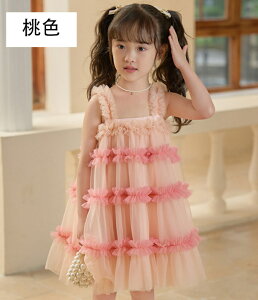 〜商品説明〜 おとぎ話の主人公のような、ふわふわチュールが魅力のプリンセス風ドレス! 軽やかなティアードデザインと肩のフリルストラップで、女の子の可愛さを最大限に引き立てます。 柔らかく肌触りの良い素材だから、発表会やお