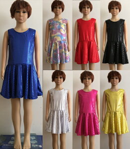 お子様に負担をかけず、舞台衣装、ダンス衣装として最適! ホログラム 半袖ワンピース スカート 子供用 大人用 ダンス衣装 ヒップホップ衣装 キッズダンス 子供 キッズヒップホップ衣装 スパンコール衣装...