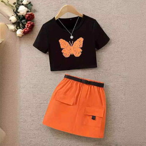 ・対象: 女児・スタイル: 欧米・セット内容: スカート、トップス・袖丈: 半袖・フード: なし・厚さ: 普通・柄: 無地、文字・素材: ポリエステル100%・対象年齢: 8歳以上・要素: セットアップ、プリント・カラー: オレンジ