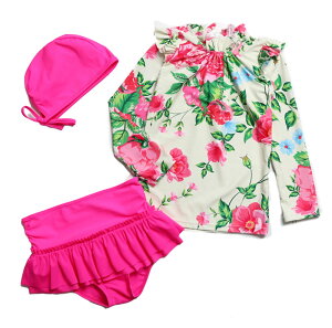 ■商品説明 フリルつきでかわいいデザインの長袖ラッシュガード・スカート・キャップつきで強い日差しからしっかりガード 鮮やかなピンクのスカートは2段フリルでとてもかわいらしいデザインです。 ■セット内容 長袖ラッシュガード+