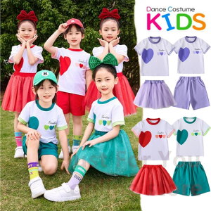 ★商品詳細 関連キーワード: かっこいいハート柄衣装が流行ってる♪ キッズダンス衣装 ヒップホップ HIPHOP 子供 ダンススカート 女の子 ダンス衣装 ジャズダンス ステージ衣装 練習着 体操服 社交ダンス セット内容: シャツ、...