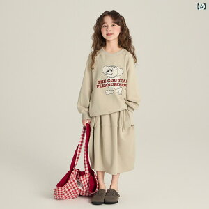 ・対象: 女の子・スタイル: 韓国風・セット内容: スカート、トップス・セット数: 2点・対象年齢: 3〜8歳・袖丈: 長袖・フード: なし・厚さ: 普通・柄: キャラクター・画像: モデル着用写真・要素: セットアップ、キャラクター...
