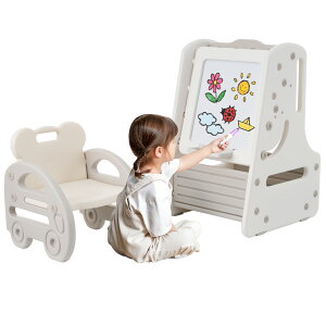 【多機能性の集大成】本製品は真に多機能性を備えています。正面のホワイトボードは子どもたちの学習と創造に役立ちますが、それに加えて、背面には絵本棚と小さなテーブルが統合され、読書、手作業、さらには小さなパーティーやゲー