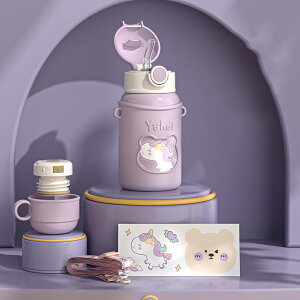 【水の飲み方には2種類の魔法瓶】魔法瓶はワンタッチスイッチを採用しているので片手でも開くことができます。保温保冷水筒には2種類の漏れ防止カバーが配置されています。広口カバー、直飲みカバー、ストローが配置されています...