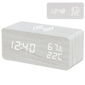 HUAJUN 目覚まし時計 置き時計 デジタル 木製 LED 温度・湿度表示 明るさ調整 年月日表示 休日アラームオフ機能 音声感応モード 12時間制/24時間制切り替え可能 卓上 子供用 大人用 日本語取付説明書付き...
