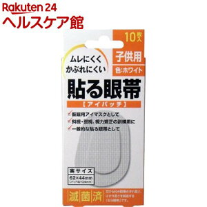 お店TOP>衛生医療>ケア用品>目のケア用品>眼帯全部>貼る眼帯 アイパッチ 子供用 (10枚入)【貼る眼帯 アイパッチ 子供用の商品詳細】●耳ひも付き眼帯のずれ易さ、はずれ易さを解消する貼る眼帯です!●ムレにくく、ソフトで通気性の