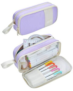 鉛筆も消しゴムも文具もまとめてコンパクトに収容できるツールペンケース。 ダブルファスナーでユーザーの習慣に基づいて開閉可能で、子供でも開きやすいです。 2段式棚デザインで文具などのツールを簡易分類できます。上部を折り返す