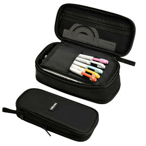 カラー:ブラック◆商品名:YOKUMA 筆箱 ペンケース おしゃれ シンプル 大容量 多機能 大人 高校生 中 学生 男の子 女の子 大学生 小 学生 子供用 (ブラック)【階層型ストレージ】上層(メッシュポケット1)....