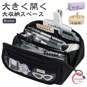 【大きく開く】【大収納スペース】【6color】仕切り付きでたっぷり収納できる、大容量ペンケース!ぐるっと大きく開いて、いるものが見つけやすい。広々としたスペースには、50〜100本のペンあるいは鉛筆、メモ、その他の小さな道具や文