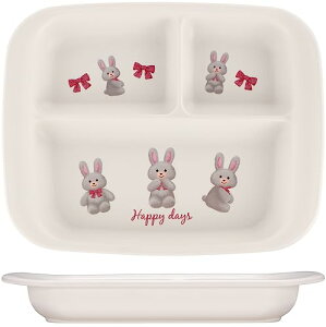 プレートうさぎ/-/XP7AG-A・Color:うさぎStyle:プレート・サイズ:幅23.5×奥行18.6×高さ2.9cm・小・中・大に分かれた仕切り付きランチ皿/小80ml・中110ml・大280ml・材質:プラスチック(ポリプロ...