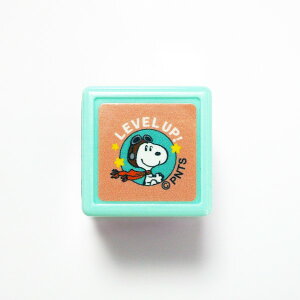 インク台いらずのお手軽な浸透印です☆彡 スヌーピーの可愛い絵柄と使いやすいメッセージがお仕事や連絡帳にちょうどいいスタンプ☆ 絵柄は”スヌーピー LEVEL UP! ”です! ※上面のシール通りの絵柄ですが、単色です!(背景絵柄は捺しても