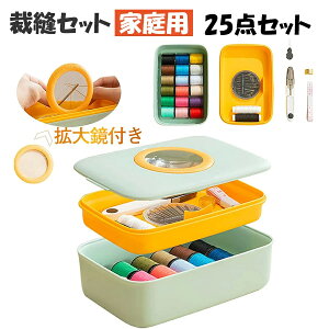 裁縫セット 25点セット 拡大鏡付き拡大鏡のデザインにより、針を通しやすくなっています。特に、小学生の皆さんと高齢者 たちにとっては便利なものです。二層収納ボックスのデザインで、裁縫用の基本的な道具は全部揃えて、きちんと収