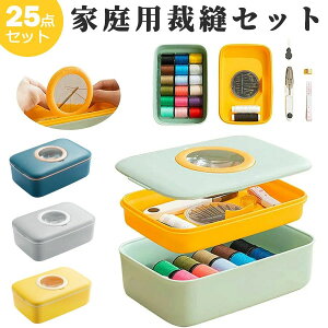 裁縫セット 25点セット 拡大鏡付き拡大鏡のデザインにより、針を通しやすくなっています。特に、小学生の皆さんと高齢者 たちにとっては便利なものです。二層収納ボックスのデザインで、裁縫用の基本的な道具は全部揃えて、きちんと収