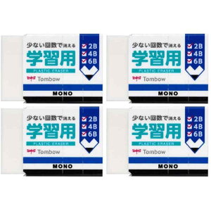 トンボ鉛筆 消しゴム 低学年向け MONO モノ 学習用 小学生 4個 JCC-411AZ【MONO消しゴム】1969年誕生の青白黒のストライプのデザインでおなじみの高品質で信頼のブランドの消しゴム【特徴】...