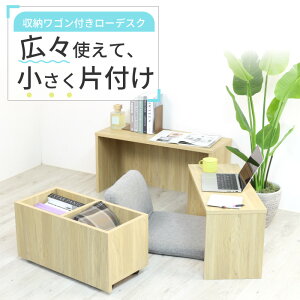 【収納ワゴン付き ローデスク】省スペースで使いたいときに広く使える。広く使えて、コンパクトに片付けられる。テレビ台としての使用も可能。仕様 / サイズ 商品サイズ/重量 デスク:約 幅90×奥行35×高さ45cm...