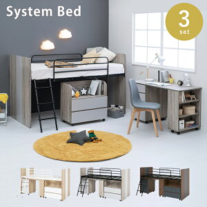 ベッド、デスク、チェストが1つで揃う多機能家具。抜群の収納力と充実の機能でお子様から大人までご使用いただけるシステムベッドです。ベッドはシングルベッドに分割可能。 ■サイズ : ...