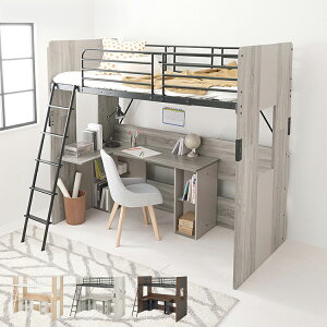 天板が広々使えるL字型のデスクが一体となったロフトベッド。ファイルや教科書の収納もできるサイドシェルフ付き。 ■カラー グレー ■サイズ(約) 幅104cm×奥行203cm×高さ185cm×座面高144.5cm ■素材 主材:プリン...