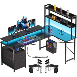【様々なシーンで大活躍L字デスク】L字デザインのデスクで、部屋を最大限に活用し、さまざまなコーナーにピッタリ!必要に応じて机を長方形に組み立てることもできます。2人デスクにも十分な使用スペースを確保。ゲーミングデスクとして