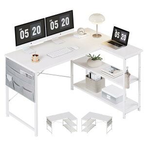 【オープン棚が付いた】デスクの上を乱雑にすることなく、棚で書類、本、文房具などをすっきりと収めるのに十分なスペースを備えています。L字デザインだから部屋のコーナーを最大限に活かせ、家庭でもオフィスでも...