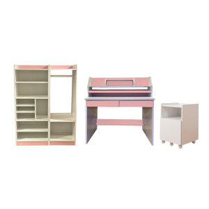 商品について ■セット内容 デスク×1 書棚×1 ワゴン×1 ハンガーラック×1 シェルフ×1 ■商品の特徴 組み替え自由自在の学習デスク5点セット。 姫系からシックなカラーまで7色から選択可能です。 ハンガーラックとシェルフは別々で...