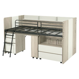 木製 アイアン 子供 ベッド 大人 白 ホワイト ブラック オーク ベッド下 フリースペース 学習机 ラック 収納 はしご ベット シングルベッド 机付き パイプ 幅220cm (グレー/ホワイト) la-070...