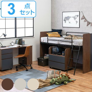 ロフトベッド+デスク+ワゴンの3点SET ベッド下の空間を有効活用し、お子さまの収納スペースをしっかり確保します。 ■カラー ブラウン ■サイズ(約) ベッド:(約)幅102×奥行203×高さ119×床面高82cm デスク:(約)幅...