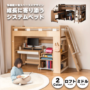 います。 【お部屋に必要なモノが揃っている 】寝室に必要なものを一箇所につくる、快適な眠る、勉強、収納が叶える一台です。 【レイアウト自由自在 】 ライフスタイルの変化や、子供の成長にも対応できるベッドです...