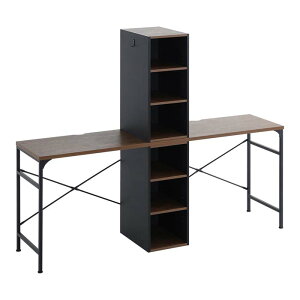 子供が成長してもずっと使えるヴィンテージ風ツインデスク!いろいろな組み換えができる仕様になっております。天板連結パターンにすると2人仲良く勉強や相談ができます。ラックのサイドはフックが付いており、ランドセルやカバンを掛