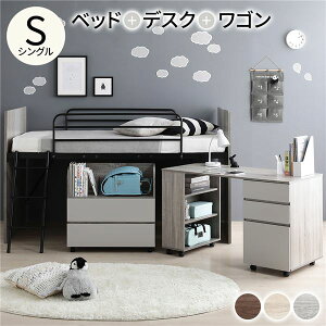サイズベッド 幅103.8×奥行204×高さ110cm 床高: 82.5cm デスク 幅100×奥行50×高さ72cm サイドワゴン 幅42×奥行44×高さ54cm ステップ 幅40...