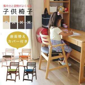 姿勢を矯正しながら学習に集中することが出来るキッズチェア。ダブルバックの背もたれがお子様の体をしっかりとサポート。お子様の成長にあわせて背もたれの高さ調節可能。跳ね上げ式のアームレスト。カバーは取り外し出来て洗濯可能