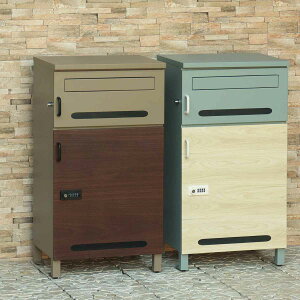 木目柄がおしゃれな宅配ボックス付きポスト プッシュキー メッセージマグネット付き