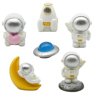 【送料無料】6個宇宙飛行士フィギュア ufo ロヶット カプセル ウサギ彫像 樹脂像 オーナメント 宇宙飛行士の置物 装飾 本棚 彫刻家の装飾 キッズチャイルド - ホワイトシルバー ミニ置物 ミニチュア...