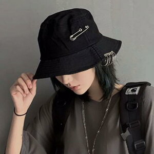 8cm つば 6cm 頭周り 59cm 商品名:バケットハット 安全ピン リング 黒 ブラック 韓国 レディース メンズ フ...