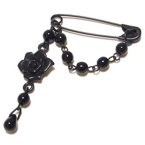 オリジナル】 お手持ちのマスクに安全ピンでつけるタイプ 普通のマスクがオシャレに変身! 個性的なスタイルをお好みの方へのNEWアイテムです。 ブラックペイントの安全ピンに黒薔薇 ブラックボールチェーンタイプサ