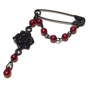オリジナル】 お手持ちのマスクに安全ピンでつけるタイプ 普通のマスクがオシャレに変身! 個性的なスタイルをお好みの方へのNEWアイテムです。 ブラックペイントの安全ピンに黒薔薇 ワインパールチェーンタイプサイ