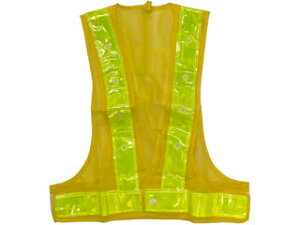 【特長】前合せ部分がファスナーなので着脱がスムーズ!LED11個で夜間の視認性も抜群です!通気性に優れたメッシュベスト便利なポケット付背中に反射帯ありサイドは面ファスナーになっています。反射材幅70mm【仕様】サイズ:フリーサイ