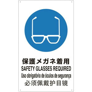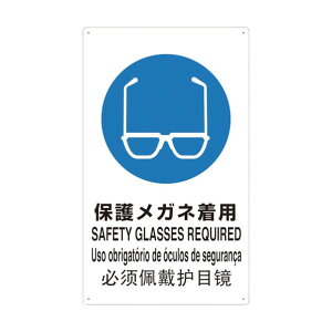表示内容:保護メガネ着用 品名:802-611A サイズ:450×300×1.2mm厚 材質:エコユニボード 取付仕様:2.5mm径穴4スミ 規格:JIS規格安全...