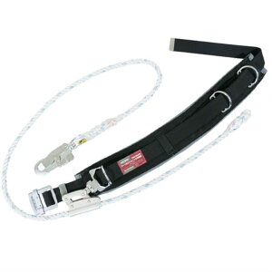 ランヤードサイズ:幅15mm×有効長さ1,400mm、ロック機構:あり バックル:アルミスライドバックル(軽量)、構造物側フック:FS-93(軽量) 重量:約1,190g、使用可能重量:100kgまで...