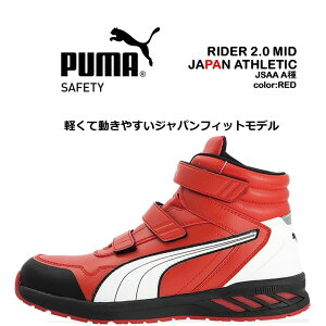 PUMA プーマ 安全靴 ライダー2.0 レッド ミドルカット PUMA SAFETY史上、最軽量モデル! 今までのPUMAのイメージを一新させる履きやすく動きやすい軽量タイプの安全靴です。 ・グラス...
