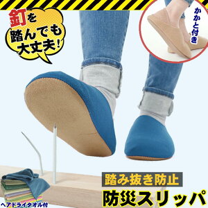 普段履いているルームシューズがもしもの時に身をまもる! 毎日使える、毎日備える。耐踏み抜き性インソール内蔵の防災スリッパ。 災害時、散乱した釘やガラス片などの危険物から足を守ります。 普段からもしものときに備える。実用性と防災性を兼ね...