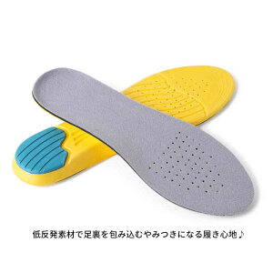 商品内容 ★柔らかくクッション性に優れた、衝撃吸収を実現したインソールです♪ ★長時間履いても蒸れづらく、高い通気性、速乾性を実現しました。防臭加工で嫌なにおいを軽減! ★22.5-27.5cmのサイズも細かく選べて、靴に合わせて切る
