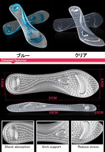 衝撃吸収!アーチサポートジェル インソール 】 長時間の 立ち仕事、営業などでよく歩く方におすすめ! 足裏を柔らか素材で保護。 分厚いシリコンジェル素材が、足の衝撃をしっかり吸収し...