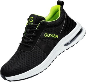 【通気性が良い軽量作業靴】メッシュ素材で通気性を確保し、快適なフィット感のあるアッパー部分。作業が快適になる蒸れずに涼しい安全靴。軽さが魅力のセーフティシューズ。 【安全性能】作業靴のつま先部