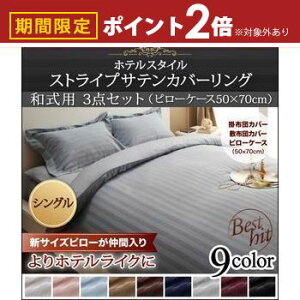 9色から選べるホテルスタイル ストライプサテンカバーリング 【布団カバーセット 和式用 50×70用 シングル3点セット】 サイズ (掛け布団カバー)150×210cm (敷布団カバー)110×220cm (ピローケース)50×70c...
