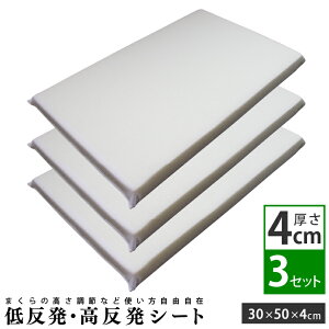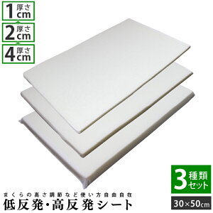 物足りない枕に重ねるだけ! 高さ調整シート 厚さ4cm 3枚セット 30×50cm 高反発・低反発 素材 【中材】 高反発ウレタンフォーム 低反発ウレタンフォーム 【側地】 ポリエステル100%...