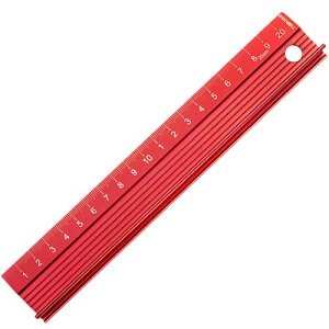 カッター定規 アルミスケール 20cm 曲尺 カットガイド 高精度裁断定規 安全ガード付き (赤, 20cm) 【安全にカット作業が可能】 厚紙やベニヤ板、スチレンボードなどを切るときでも抜群の安定感を提供...