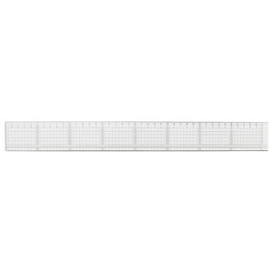 50cmまでの目盛りが入った直定規です。定規の全体に1cmの実線方眼と、5mmの点眼方眼が印刷されています。定規の一側面にはステンレス加工が施されていて、カット時に本体を傷めないので、非常に便利です。