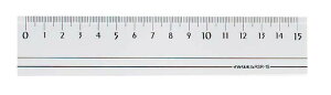 目盛りサイズ/15cm ユニバーサルデザイン【仕様】 ■外寸法:170×35(t2) ■目盛りサイズ:15cm ■材質/PMMA(透明)読みやすい大きな数字とウェーブ目盛り付き。直線を引くための定規です。CLR15
