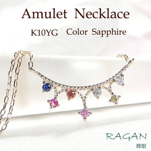【送料無料】【品質保証書】 ☆カラフルで可愛い♪幸せを運ぶカラーサファイヤのお守りネックレス K10イエローゴールドに、大きさの違う7色のカラーサファイヤをランダムにセッティングしたカラフルなネックレスです。滑らかな曲線のド